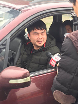 圖為臺州高速公路支付寶移動支付通行費第一輛車的車主接受媒體采訪