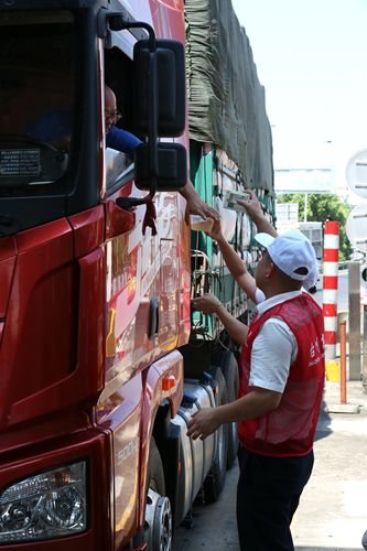 持續(xù)的熱浪高溫,給行駛在高速公路上的車輛帶來極大的安全隱患。 8月6日,臺州收費所組織志愿者開展“炎暑酷夏送清涼,絲絲關愛促平安”為主題的送清涼活動,為出行在外的司乘人員們送去一絲清涼,緩解旅途中的枯燥和勞累。