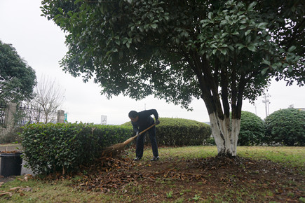 圖為工作人員在打掃衛生 大伙齊動手,拿工具掃落葉、清理垃圾、清理不易分解的污染物,個個分工有序,干得熱火朝天。經過近3個多小時的清理,管理房區域變得越來越干凈、整潔,整個站容站貌得到了進一步的提升。 王益民要求大家要尊重彼此的勞動果實,而且平時也要常清不懈,在我們要求別人文明行為的前提是要提供給人文明的環境。 夏蓮萍
