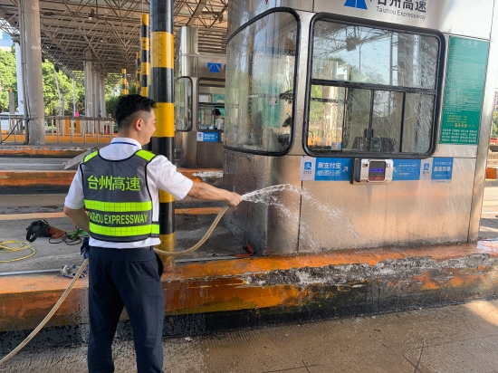 圖為工作人員打掃車道衛(wèi)生 此次環(huán)境衛(wèi)生大掃除本著徹底清理、不留死角的原則,以班組為單位,細分責任區(qū),明確保潔要求,限時清理,全所員工充分發(fā)揚不怕苦、不怕累的精神,重點對收費站內(nèi)外廣場、車道、崗亭、島頭、邊溝、標志標牌等區(qū)域及設施設備進行了一次深度清潔。