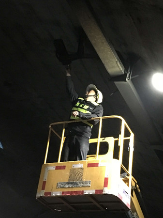 圖為黃土嶺隧道所內消防檢查 此次清洗工作,隧道所組織了兩個執勤隊,分別對隧道內的監控攝像頭、照明燈、標志燈進行清洗和維修保養,匯通養護公司負責隧道壁、各類標志牌等方面的清洗。此外,隧道所還組織專人對隧道內消防設備進行檢查登記,全面摸排設備狀況,維修存在安全隱患的設備設施。 據統計,此次設備檢修共擦洗攝像鏡頭42只,照明燈1150盞,各類安全警示標志23套,滅火器471只。 經過為期五天的清洗、保養、維修后,隧道內燈光通明、監控清晰、機電設備使用可靠,有效地改善和美化了隧道通行環境,為春運提供安全保障。 金衛軍