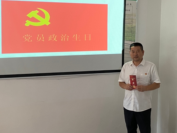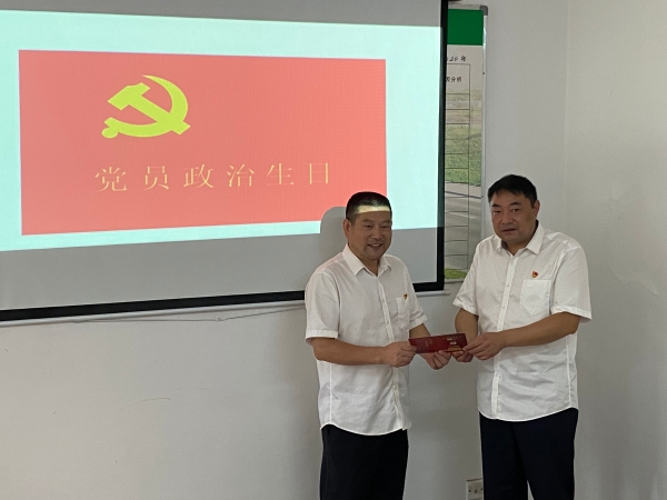 會(huì)議現(xiàn)場(chǎng),黨支部書記李海福向李學(xué)來(lái)贈(zèng)送“政治生日”賀卡,并送上“政治生日”祝福,讓李學(xué)來(lái)感受到來(lái)自黨組織的關(guān)懷。