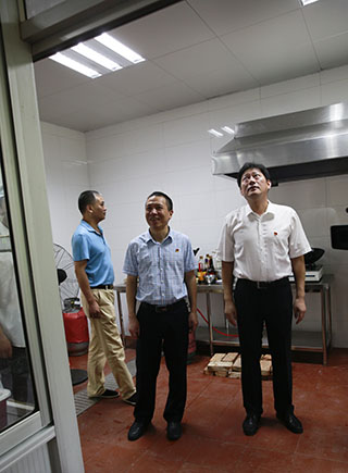 圖為公司副董事長、總經理張建平檢查收費所食堂 “今天車流量多嗎?你們是公司形象的代表,請把最優質的服務提供給他們。”在臺州收費所一號崗亭里,張建平一邊慰問當班收費員,囑咐他們注意安全和休息,一邊鼓勵他們堅持做好文明服務。他還到黃土嶺隧道所、臨海南收費所慰問當班執勤隊員和收費員。此時,各所食堂管理房正處于改造階段,他仔細查看了各所食堂和工作場所,了解大家的飲食和工作環境。