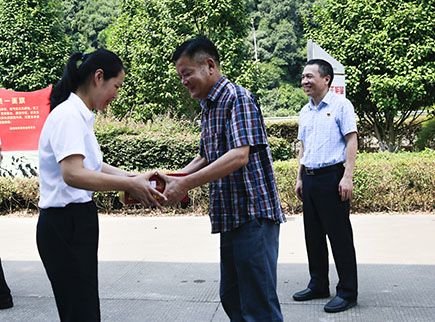 圖為公司工會主席項義超給收費所員工送上消暑品