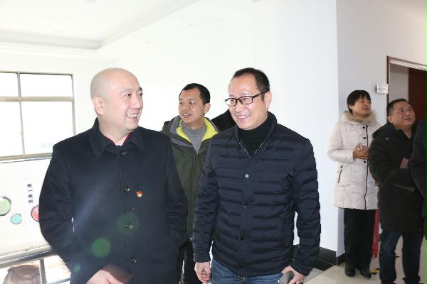 圖為集團(tuán)副總經(jīng)理章海峰帶領(lǐng)考察組參觀(guān)上墻黨建文化