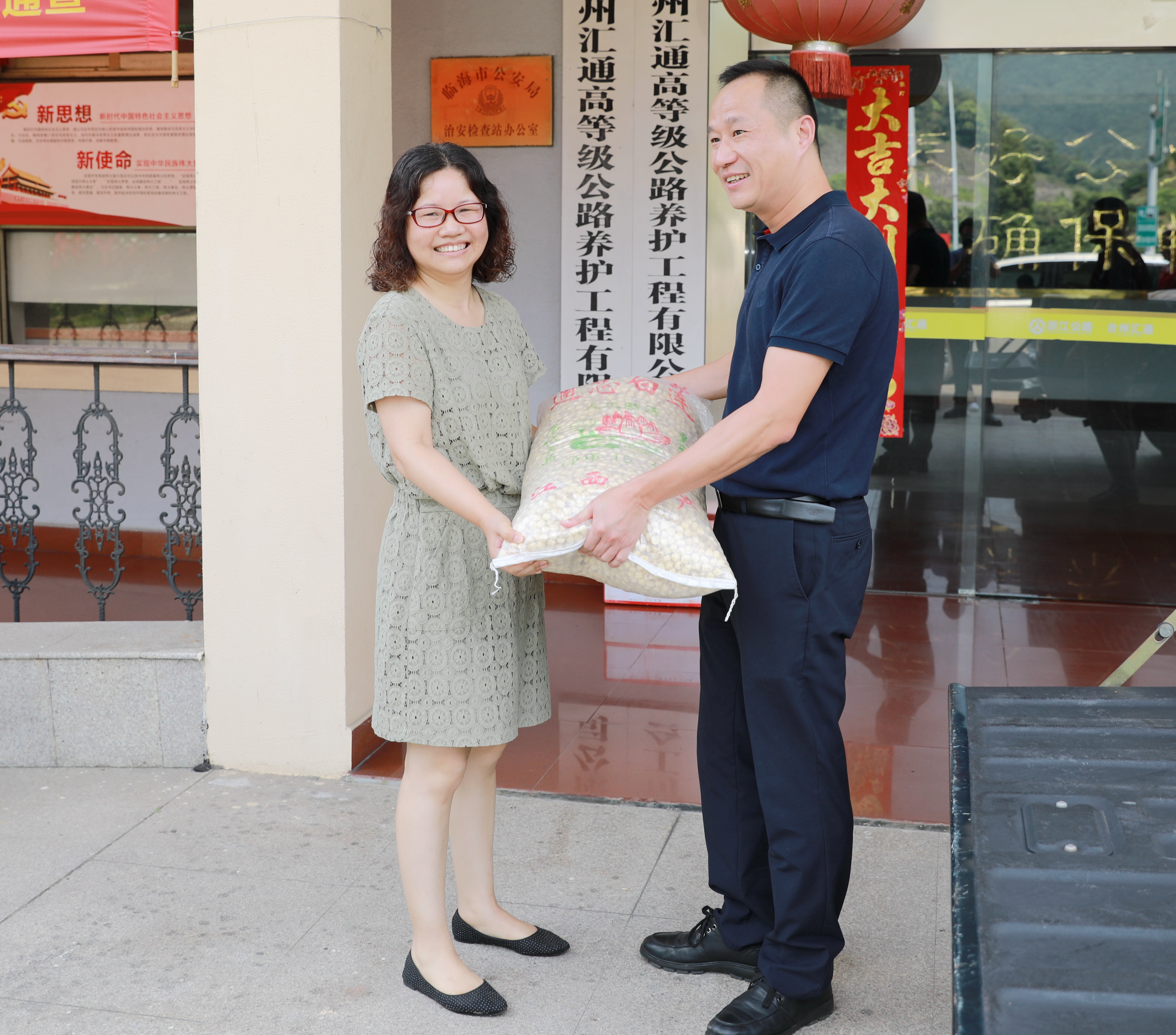 沁人心脾|臺州高速集團開展“夏日送清涼”活動 7月15日上午,臺州高速集團開展“夏日送清涼”活動。集團黨委書記、董事長、總經理陳文波,副總經理陳保衛、羅小將、章海峰、工會主席項同富兵分兩路,帶領送清涼慰問組同志,深入高速交警、路政、匯通養護公司、各收費所、隧道所、中心、子公司等單位看望慰問值守人員并送去慰問品,向冒著高溫酷暑辛勤工作的工作人員表示敬意和慰問。感謝廣大員工在高溫下堅守崗位、辛勤勞動,集團領導親手送上防暑降溫的紅棗、綠豆、蓮子、飲料等物資,為在炎炎夏日中堅持工作的一線廣大人員送去了絲絲清涼。
