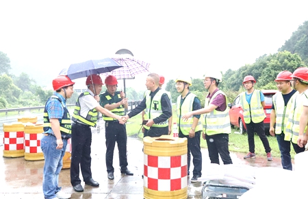 7月23日上午,集團總經理張建平冒著大雨到大溪嶺—湖霧嶺隧道機電改造現場視察指導工作,詳細了解工程進展情況。
