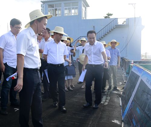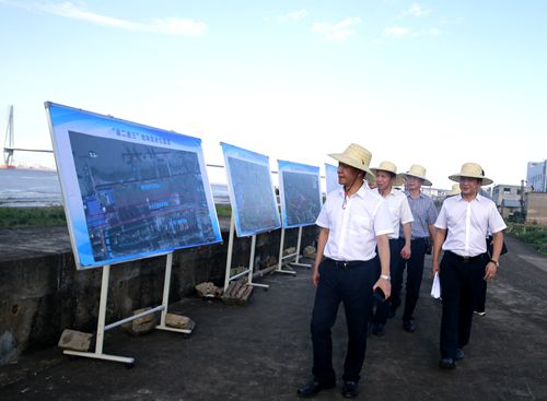 圖為臺州市副市長張加波實地察看海門港埠碼頭與新港區(qū)規(guī)劃建設用地 烈日下,調(diào)研組分別實地察看了海門港埠碼頭與新港區(qū)規(guī)劃建設用地。結(jié)合海門港埠總公司現(xiàn)狀用地區(qū)域圖及新碼頭選址方案圖展板,羅小將詳細介紹了港區(qū)碼頭目前區(qū)域現(xiàn)狀及新港區(qū)選址規(guī)劃設想方案,提出了港區(qū)剩余土地利用、建設項目規(guī)劃許可、新港區(qū)建設用地征遷安置等需要政府相關(guān)部門和椒江區(qū)政府大力支持的問題。