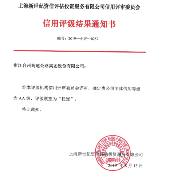 9月19日,公司順利收到新世紀(jì)評(píng)級(jí)公司AA級(jí)的主體信用等級(jí)通知書(shū),這是公司繼2017年獲得東方金誠(chéng)評(píng)級(jí)公司AA級(jí)主體評(píng)級(jí)后獲得的第二個(gè)AA級(jí)評(píng)級(jí)。