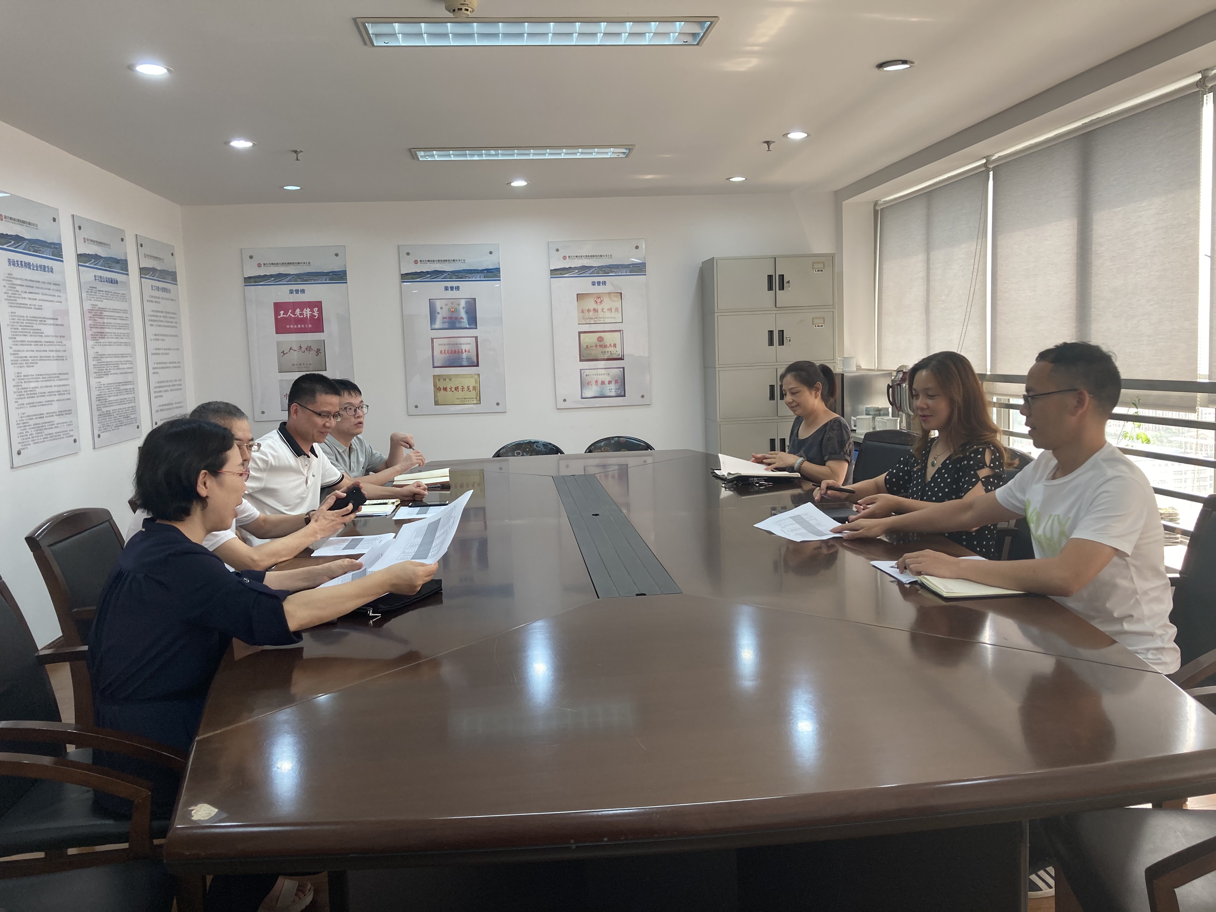 市國資委一行到公司進行工作交流 8月10日上午,臺州市國資委產權管理處處長胡斌帶領臺州市國有資本運營集團相關人員就債券發行事宜到公司進行交流。公司總會計師章彩霞以及結算中心有關人員參加現場交流。