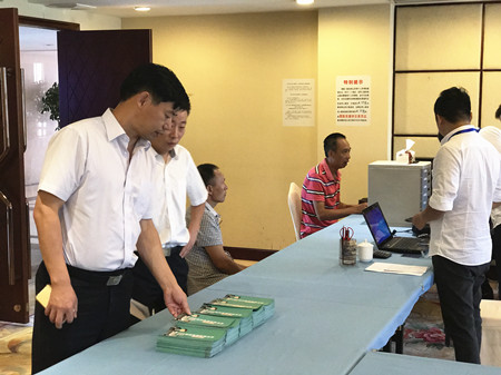 圖為集團副總經理陳保衛正在檢查收購點宣傳資料