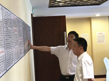 圖為集團副總經理陳保衛正在檢查標語標識 陳保衛認真查看了仙居收購點從入口到辦理點的指示標牌,并向工作人員詢問了該收購點所在酒店的知名度。經工作人員介紹,仙居東方大酒店是仙居當地人非常熟悉的酒店,還未發生過股東找不到收購點而打電話詢問的事。陳保衛聽后面帶微笑,連連點頭。 走到收購點內,員工正在給幾名股東辦理咨詢業務,陳保衛轉身查看起收購點內等待區、標語標識等布置。當看到貼在墻上的“市國資委主任徐豪就臺州高速股權集中和優化的有關問題接收臺州各大媒體的采訪提問”內容時,陳保衛認為該招貼畫制作簡潔、一目了然,可以較好地展示公司形象,回答股東疑問。他要求收購點工作人員再接再厲、主動作為,以熱情飽滿的服務態度,貫徹落實好各項工作部署,共同努力完成股權集中和優化工作。 眼下,該收購點股權集中和優化工作已步入正軌,各項工作運行平穩正常,當前正在為9月8日仙居縣國有資產投資集團有限公司第一個轉讓股權宣傳事宜進行多方協調。 張波