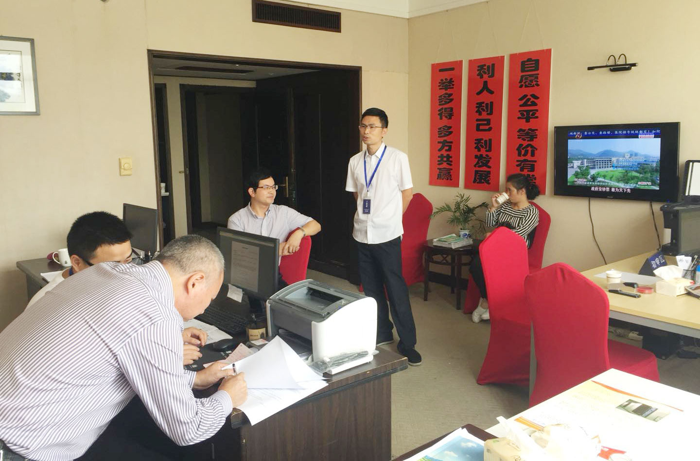 圖為臺州市政府副秘書長蘇元蓬走訪三門股權(quán)收購點 蘇元蓬一邊喝著茶水,一邊和大家拉起了家常。他是三門人,趁著國慶中秋假期回家探望親人,就來三門收購點走走,看望一下大家。 蘇元蓬回顧了市政府與集團公司此次股權(quán)收購的前期準備與工作動員,并詳細詢問了公司目前的收購情況和三門點的收購進度。工作人員介紹由于前期三門縣政府高度重視此次收購工作,特別是三門縣委常委、常務(wù)副縣長葉邦漢牽頭,召集全縣各機關(guān)單位、鄉(xiāng)鎮(zhèn)街道召開高速股權(quán)收購動員會。在收購過程中,三門電視臺、三門報等媒體宣傳到位,各相關(guān)單位全力配合,縣里老領(lǐng)導(dǎo)帶頭轉(zhuǎn)讓,三門股權(quán)收購工作進展順利。 “三門縣城里,你們有沒有做廣告宣傳?股東們是不是都知道了?”蘇元蓬問道。“有的,有的,這是我們公司準備的公告海報。”工作人員林玲遞過一份海報。“我們打算節(jié)后張貼。”當?shù)弥T收購點在對前來辦理轉(zhuǎn)讓的股東隨訪和電話問詢中,已確認大多數(shù)股東都已知曉股權(quán)收購這個消息后,蘇元蓬大加贊賞。 蘇元蓬強調(diào),要強調(diào)此次股權(quán)收購對于企業(yè)轉(zhuǎn)型升級的重要意義,現(xiàn)場工作人員要耐心解釋,深入宣傳,特別是那些已經(jīng)辦理轉(zhuǎn)讓的股東,由他們口口相傳會更有說服力。對于國企法人股東,一定要借助政府的力量,由臺州市國資委與當?shù)貒Y局共同推動,促成國企法人盡快轉(zhuǎn)讓,早日完成股權(quán)收購任務(wù)。 邵全森