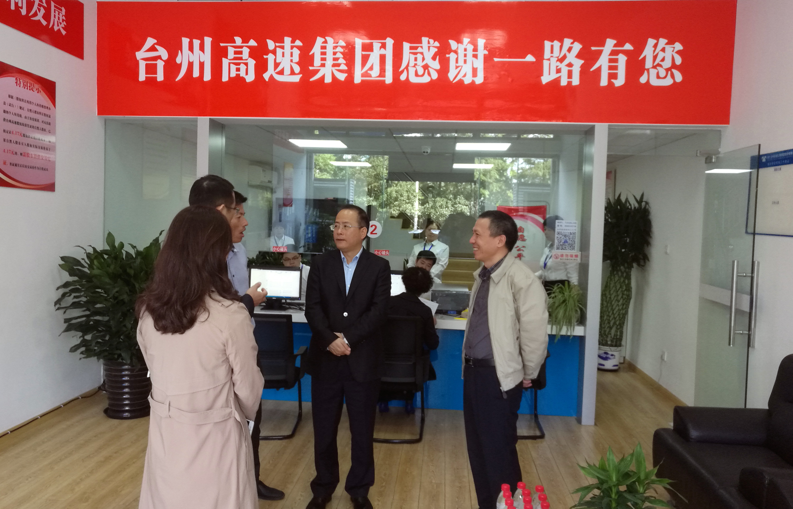 10月21日(周六)上午,市委常委、常務副市長董貴波到臺州高速股權椒江收購點調研。臺州高速集團公司總經理張建平、總會計師章彩霞、董事會秘書王雍,椒江區常務副區長王智承等陪同。