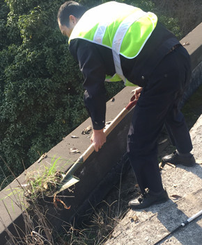 圖為清理后的屋頂排水溝 大溪嶺隧道管理所依山而建,落葉、塵土、沙石堆積極容易造成排水溝的堵塞,如汛期來臨,排水溝堵塞造成的隱患無窮。 所執(zhí)勤隊(duì)根據(jù)安排,排查配電房、管理房等汛期容易受災(zāi)害影響的隱患,遵循“發(fā)現(xiàn)一處整治一處,整治一處銷號一處”的原則,對配電房、管理房的屋頂排水這一安全隱患和薄弱環(huán)節(jié)進(jìn)行清理,以實(shí)際行動落實(shí)整改和消除隱患,確保2018年安全度汛。 陳智慧
