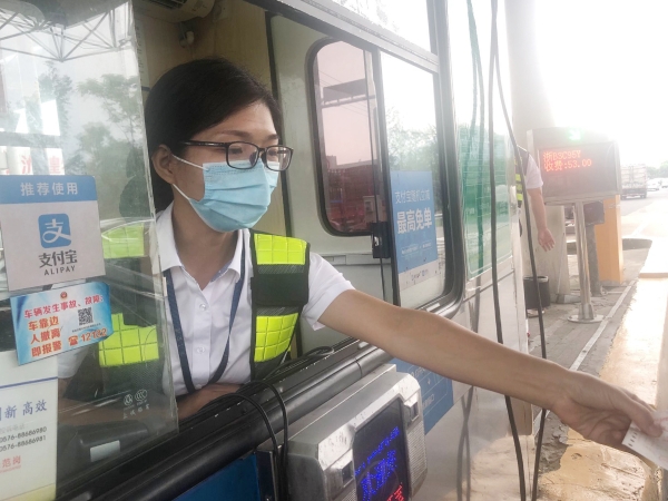 7月8日,一輛來自江蘇的小轎車由于沒帶現(xiàn)金也沒有支付寶,無法繳納通行費(fèi),司機(jī)表現(xiàn)頗為激動:“是你們沒有微信支付,又不是我不繳費(fèi),這是你們的問題!”丁小燕不卑不亢,她明白司機(jī)也需要理解,只有換位思考,將心比心,才能贏得更多的理解與尊重。于是她陪同司機(jī)一起,耐心有禮地向后面車輛的司乘解釋協(xié)調(diào),最終換得了現(xiàn)金,支付了通行費(fèi)。當(dāng)車輛啟動時(shí),司機(jī)帶著歉意的笑容和她說了聲“謝謝,再見!”