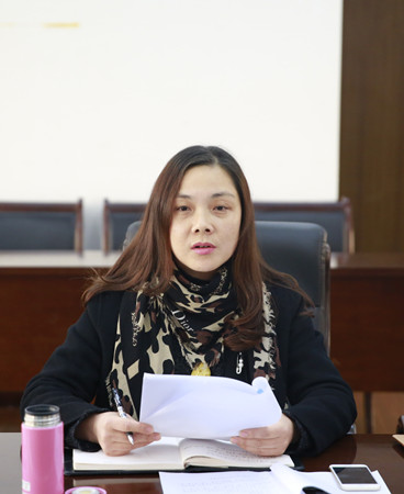 圖為公司總會計師章彩霞在會上發言