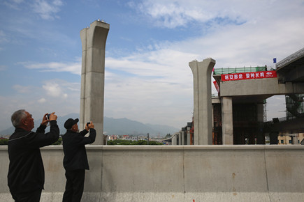 圖為部分老干部在6#立交橋上駐足拍照 老干部一行自南向北,先后來到2#隧道、7#~6#立交、8#立交施工現場,實地了解內環路(黃巖段)項目建設進展。每到一個考察點,鐘彪仔細地向老干部們介紹了項目的總體概況、目前的施工進展等相關情況。一路上,老干部們邊走邊看邊議,不時舉起手機拍照,記錄下考察中難忘的一幕。 看著眼前拔地而起的高架橋,老干部們對內環路建設的快速推進以及黃巖城市建設的發展新變化紛紛表示贊嘆,同時鼓勵全體參建人員再接再厲,抓好安全生產,高質量、高標準地完成建設任務,為加快推進臺州新型城市化發展而努力。 張琛