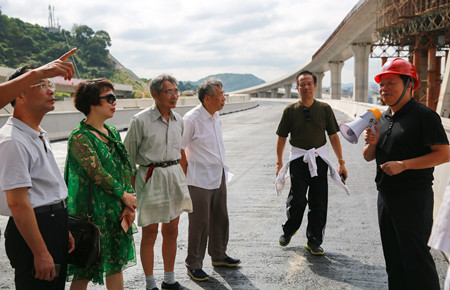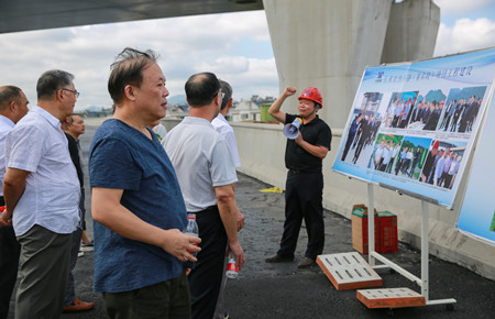 圖為在6#立交上了解工程建設(shè)情況 老干部一行實地踏勘了內(nèi)環(huán)路(黃巖段)各施工現(xiàn)場,全面了解了四個標段工程當前建設(shè)情況。一路上,老干部們一面聽取各標段工作匯報,一面用手機相機記錄現(xiàn)場當前建設(shè)情況,當知道今年11月11日內(nèi)環(huán)路將實現(xiàn)主線通車時,老干部們紛紛豎起大拇指,為內(nèi)環(huán)路建設(shè)的進度和質(zhì)量點贊,同時表示將多走多看,為內(nèi)環(huán)建設(shè)盡自己的一份力。 鐘彪對老干部們的關(guān)心和支持表示衷心感謝,并希望各位老干部多指導(dǎo)、多監(jiān)督、多提寶貴意見,助力臺州城市建設(shè)趕超發(fā)展。 張琛