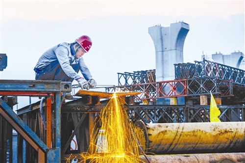 11月18日,內(nèi)環(huán)線8號立交橋上,電工楊斌正在檢修新安裝的路燈。寒風凜冽中,來自安徽的小楊緊了緊衣領(lǐng),又嫻熟地接拉起電線來。這幾天冷空氣來勢兇猛,但為了內(nèi)環(huán)線早日通車,楊斌和他的伙計們,頂風冒雨,只爭朝夕。